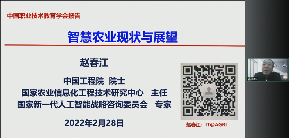 赵春江院士作题为《智慧农业现状与展望》的主旨报告。报告从智慧农业的内涵、我国智慧农业技术研究应用场景、智慧农业现代农业职业人才的需求等三个方面进行了深入阐述。赵春江表示,智慧农业工程科技的发展,已成为国际上现代农业发展的前沿,要充分研究智慧农业的生物技术、信息技术和智能化装备三大生产力要素,培养一大批有情怀、知识交叉性、技能实战型、工匠精神、懂经营会管理、适应信息化趋势的智慧农业技术技能型人才,推动农业生产方式的变化和变革,实现我国智慧农业新场景的新应用。