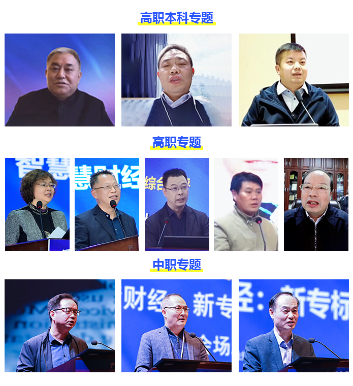 高职专科专题,江苏财经职业技术学院、重庆财经职业学院、四川财经职业学院、秦皇岛职业技术学院、内蒙古商贸职业学院、江苏财经职业技术学院、浙江同济科技职业学院、武汉船舶职业技术学院、安徽财贸职业学院、甘肃财贸职业学院、成都工业职业技术学院、山东商业职业技术学院、北京财贸职业学院、南宁职业技术学院、宁夏财经职业技术学院、河北工业职业技术大学、高等教育出版社高职事业部等26位专家分享了1个主题报告、2个专业群建设、2个专业建设、17门课程和5个教材案例。