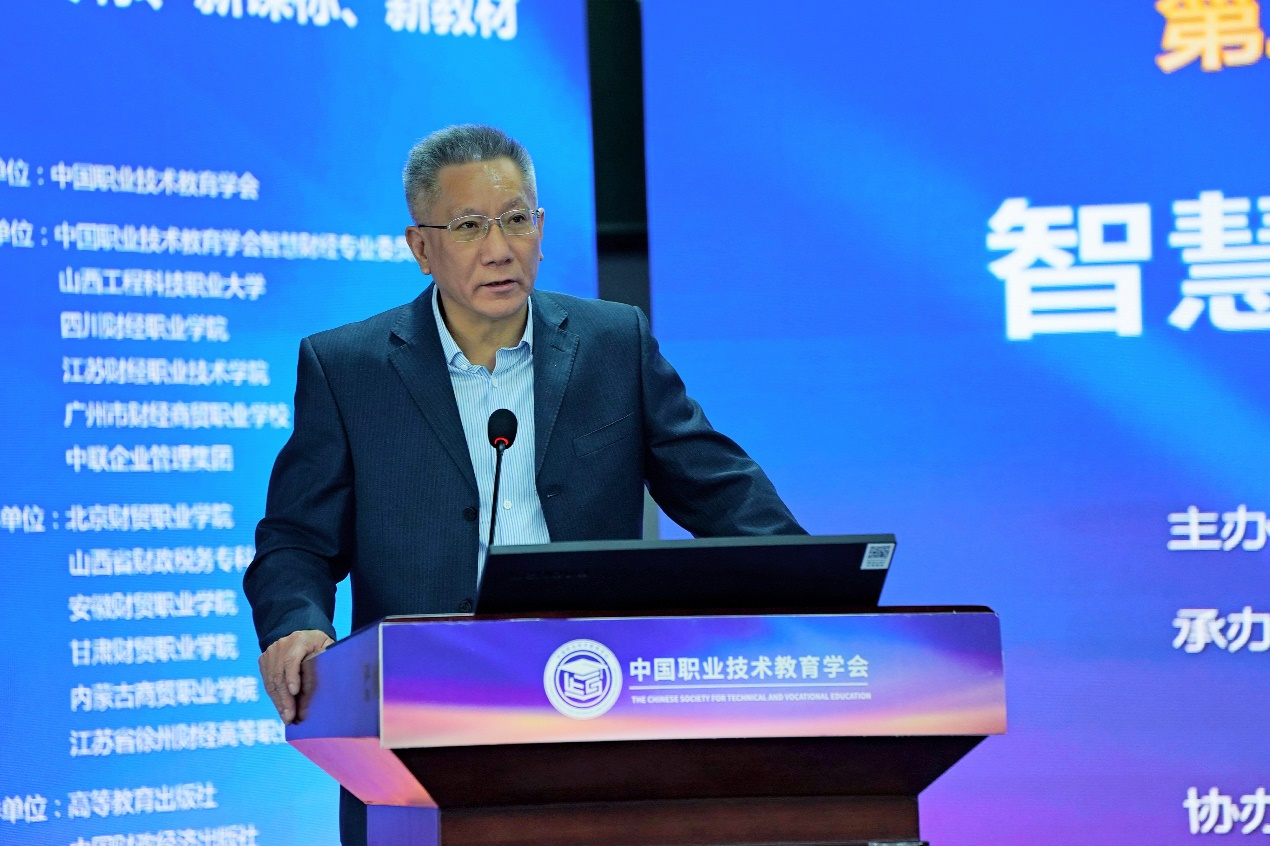 鲁昕作题为《智慧财经:培养现代化建设人才》的主旨报告。报告从总书记论中国式现代化、二十大报告人才新部署、教育强国建设各项举措、数字职业和数字专业、财经科技数字赋能举例等五个方面展开,深入阐述了现代职业教育服务中国式现代化建设的使命任务和路径举措。鲁昕表示,党的二十大提出以中国式现代化全面推进中华民族伟大复兴的重要历史任务,为职业教育高质量发展提供了新指引、新方位、新价值、新使命。要深刻理解党和二十大对教育、科技、人才三位一体、统筹推进的战略意义,以世界职业技术教育大会和世界数字教育大会为契机,加快推进职业教育数字化变革。通过数字专业与数字职业人才培养对照举例,以及财政、税收、金融、财务、会计、审计、物流等18个智慧财经案例分享,鲁昕提出财经教育要聚焦生产性服务业,加快推进数字化转型、绿色化发展,立足中国式现代化建设人才培养定位,切实发挥好职业教育在实现中国式现代化的进程中的基础性、战略性支撑作用。
