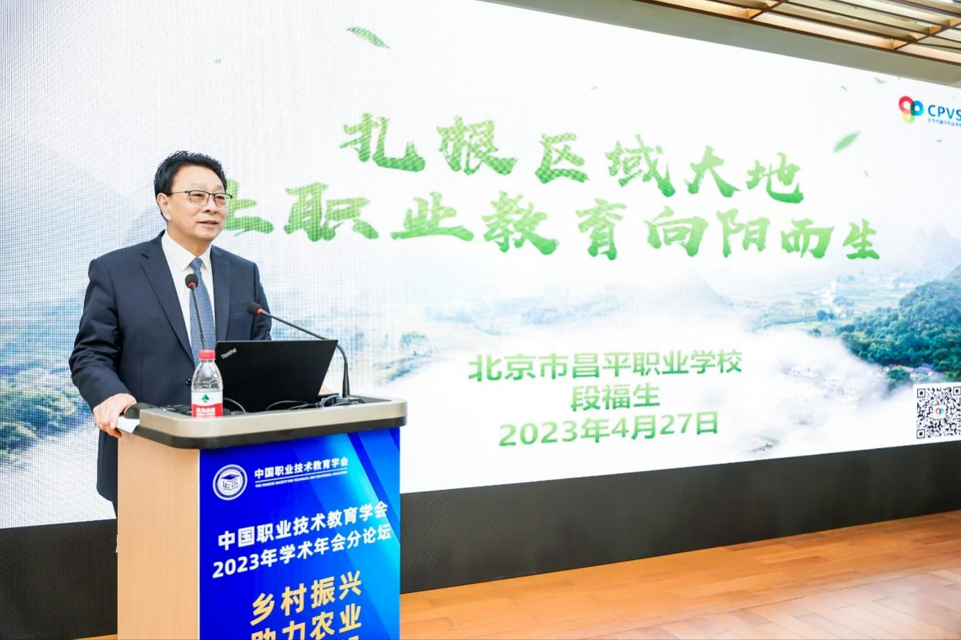 段福生作题为《扎根区域大地,让职业教育向阳而生》的报告,深入分析了人才培养与区域发展效益链、资源链不协调不匹配的问题,从“扎根大地建机制,提升企业积极性”、“融入大地搭平台,增强各方资源统筹和调配”、“服务大地创模式,提升学校育人效能”等三个方面提出了破题思路,同时提出,要精准分析村域村情,对接“五大振兴”做好顶层设计,围绕“五大振兴” 目标优化人才库、打造课程库、挖掘项目库、用好专家库,扎根、融入、服务区域大地办学育人,全面助力乡村振兴。