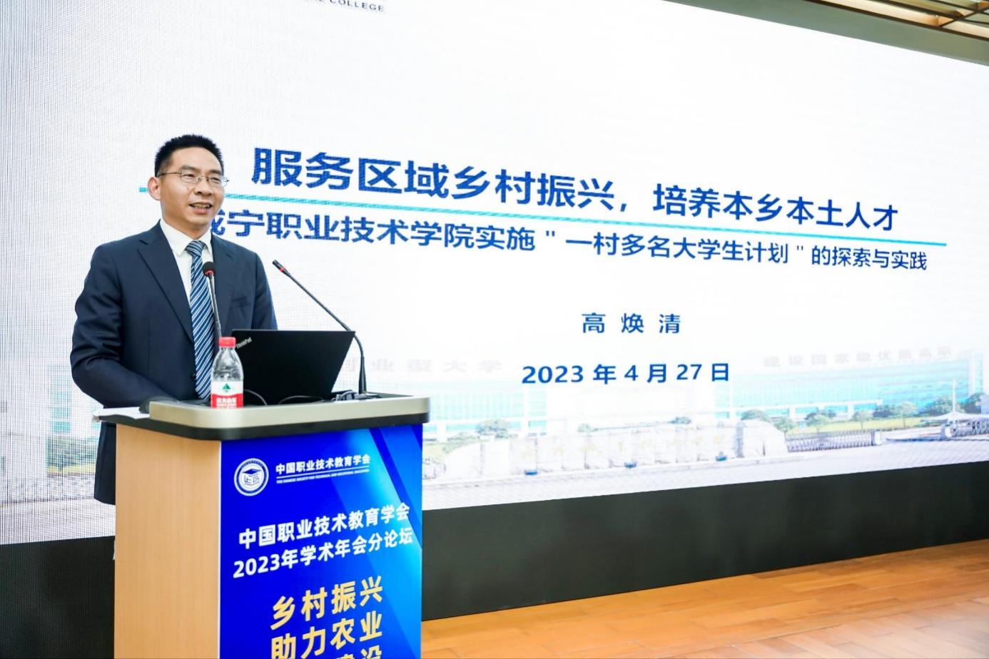 高焕清作题为《服务区域乡村振兴,培养本乡本土人才》的报告,分享了咸宁职业技术学院通过实施“一村多名大学生计划”项目有效助力乡村振兴的生动实践。报告介绍了院校统筹考虑村级组织结构、农村人才结构、产业发展趋势和涉农专业招生、就业等方面的问题,按照“村里来乡里去”的原则,科学设定培养目标,通过多元协同、共管厚植、授渔强技、跟进服务等有效措施确保“招得来”“育得好”“用得上”“扎下根”,培养了一支扎根乡村的人才队,伍促进了学校的内涵发展,为乡村振兴提供了支撑,为乡村基层治理做出了探索。