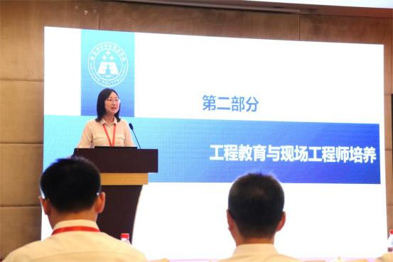 北京电子科技职业学院机电工程学院程雪梅博士作“机电专业群‘三型’人才培养的探索与实践”主题发言 。她主要介绍了有关科学素养的内涵、重要意义及国家在提升科学素养方面的行动计划,并结合工程教育和职业教育现场工程师培养计划,浅析了现场工程师的内涵要义。在此基础上,结合北京电子科技职业学院SCI人才培养体系,着重介绍机电专业群在“三型”人才,即书证融通型、专业复合型和创新实践型人才培养中的探索与实践,包括建立模块化的课程体系、四级递进的实践教学体系,从专业群到专业到课程到课堂的课程思政育人体系搭建,以及“三平台四驱动”在提 升学生综合素质和工程实践能力中的具体做法及取得育人成效。