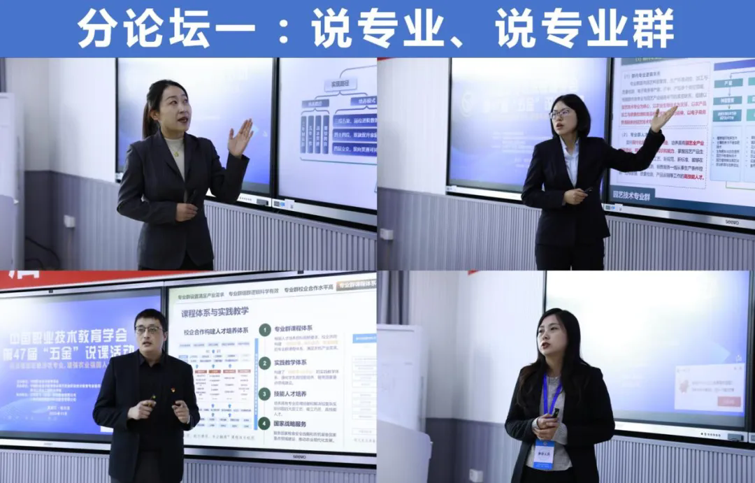 “五金”说课环节中,来自全国27所院校的38位教师,聚焦食品检验检测技术等专业群、现代农业装备应用技术等专业、农用无人机技术等课程、智慧农业相关教材及AI虚拟仿真实践基地,分享建设经验。点评环节,专家评审团针对每位教师的展示内容精准点评,既肯定了各校在涉农专业数字化改革中的创新做法,也围绕课程与产业需求衔接、教材内容更新等问题提出优化建议,现场互动答疑氛围热烈。