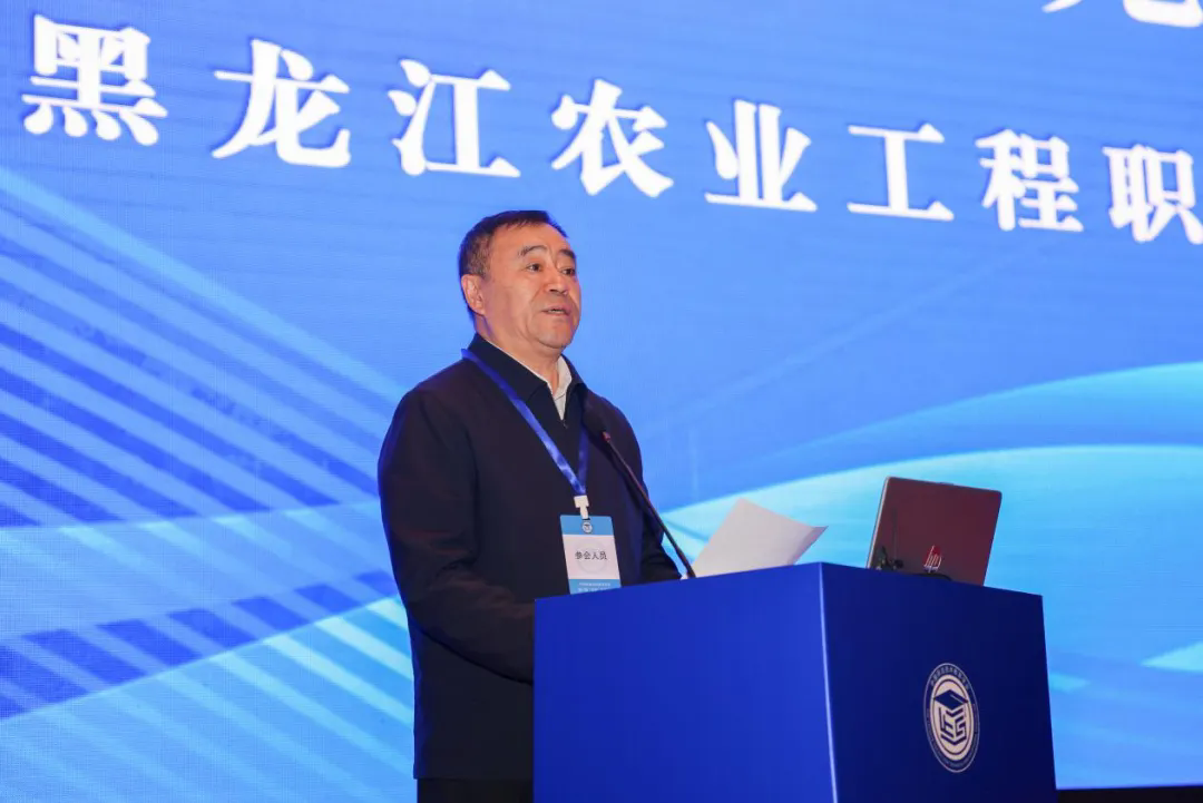 黑龙江农业工程职业学院党委书记焦光纯致欢迎辞,介绍了学校以农为本的办学特色、在农技人才培养与乡村振兴服务中的突出成效,表达了与各方携手推动涉农职教提质升级的诚挚意愿。