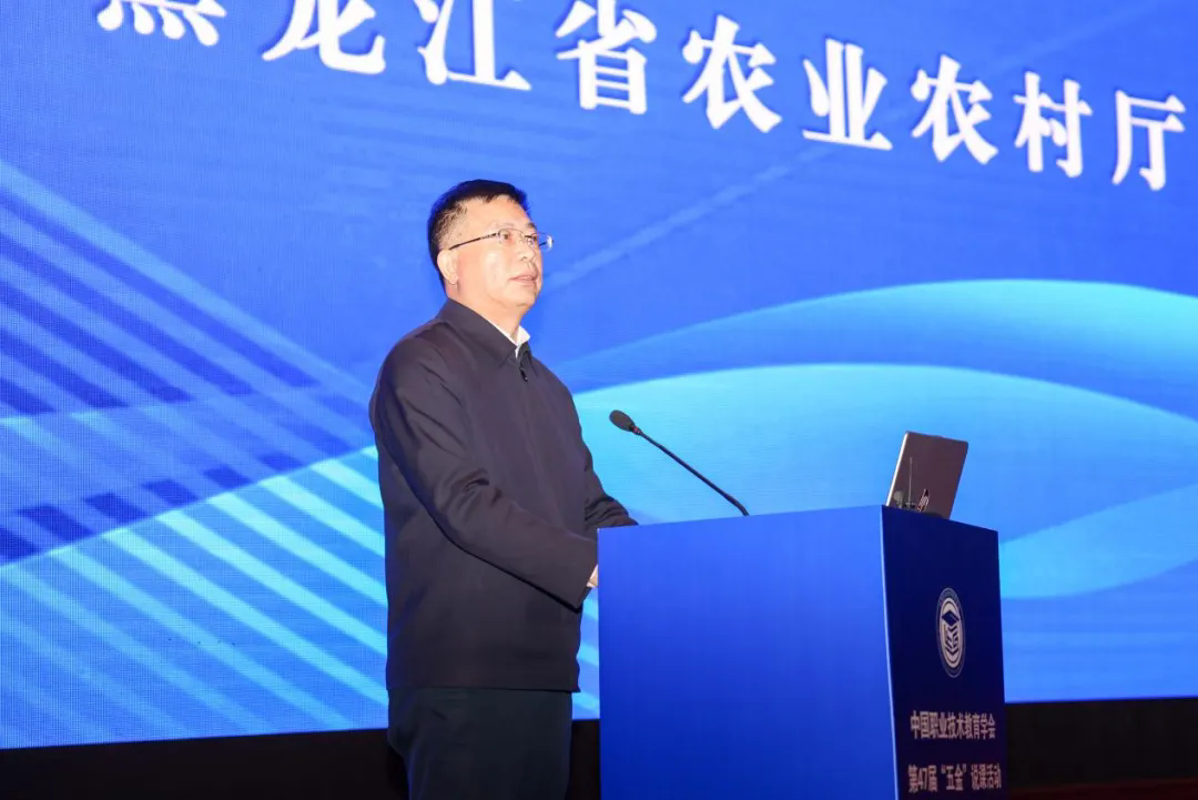 黑龙江省农业农村厅副厅长刘广宇在致辞中分享了黑龙江农业现代化建设成果,指出职业教育是破解农业转型期人才短板的关键,期待以活动为纽带深化多方合作,共建适配农业强国发展的人才队伍。