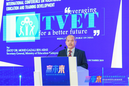 鲁昕在开幕式上致辞,她表示,中国职业教育取得了辉煌成就。中国已经建成世界上最大的职业教育体系,每年向社会提供的技术技能人才近1000万人,培训近亿次技术技能人才。中等职业教育和高等职业教育分别占同类教育结构的40%左右。职业教育的专业覆盖了社会发展的各个领域和市场所需求的各个岗位,尤其是41大门类、107中类、666个小类的工业领域。习近平总书记在2018年、2019年两次在中国深化改革委员会会议上对职业教育作出了具体的战略部署和战略安排。党的十八大以来,尤其是2014年以来,中国政府大力发展职业教育,先后出台了六个文件。2014年国务院《关于加快发展现代职业教育的决定》从体制、机制上对中国职业教育发展提出了一系列定位。今年国务院又发布了《国家职业教育改革实施方案》,同时,决定高等职业教育扩招100万。这次扩招的意义非常重大,一是推动了普及高等教育,为我国产业升级和现代化强国建设提供人力资源的战略储备,这在中国历史上是非常重要的一件事;二是深化了教育尤其是高等教育的结构性改革;三是推动了现代职业教育和培训体系的建设与完善;四是践行了“五个对接”,即职业教育专业设置要与产业需求相对接、课程内容要与职业标准相对接、教学过程要与生产过程相对接、毕业证书要与资格证书相对接、职业教育要与终身教育相对接,由此来满足国家、企业、百姓对职业教育的各方面需求;五是退役军人、下岗职工、农民工等重点群体能够在工作中获得一技之长,缓解了就业压力。
