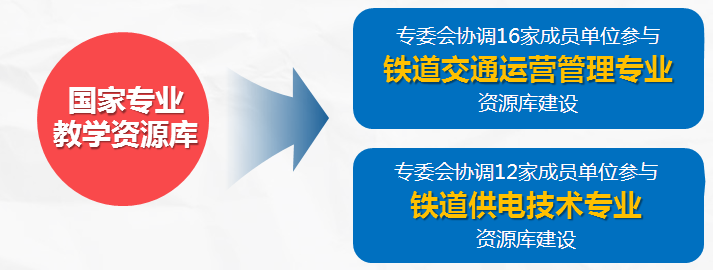 中国职教学会轨道交通专业委员会积极支持与专业升级、数字化改造相适应的国家专业教学资源库建设,协调多家成员单位参与开发了“铁道交通运营管理专业”和“铁道供电技术专业”国家级专业教学资源库。专业资源库依据国家专业教学标准,对接关键岗位职业标准,遵循“一体化设计、结构化课程、颗粒化资源”的建构逻辑,以标准化课程建设、X证书培训课程建设为主线,构建专业知识技能树。聚焦培养数字化动手能力,数字化职业能力,数字化知识结构,开发颗粒化资源。