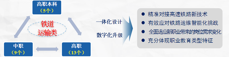 根据教育部工作部署,在鲁昕会长和教育部职业教育专业目录修(制)订综合组的指导下,中国职教学会轨道交通专业委员会王虹主任担任铁道运输类专业目录修(制)定工作专家组组长,带领全体专家开展铁道运输类专业目录修(制)定工作,一体化设置了铁道运输类9个中职,13个高职,5个高职本科职业教育专业目录体系;提出并完成13个高职专业升级与数字化改造;高标准设置了高速铁路动车组技术、高速铁路信号控制技术等5个高职本科专业。