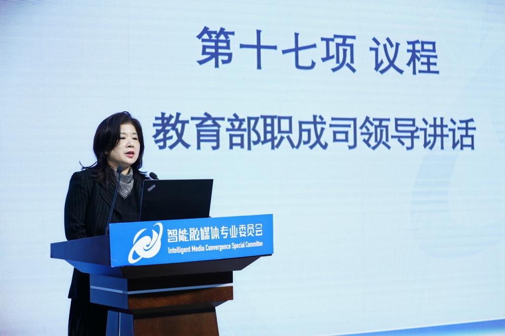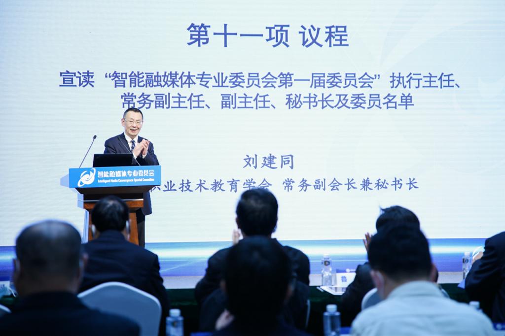 刘英在致辞中表示,学会成立智能融媒体专业委员会,主动对接国家战略和区域需求,积极推动融媒体等相关专业建设,具有积极意义。智能融媒体专业委员会:一要跟上新技术发展,提升服务经济高质量发展的支撑能力,履行新时代职业教育的历史使命。二要坚持正确方向,突出一个“正”字;强化舆论宣传,突出一个“新”字;深耕人才培养,突出一个“融”字。三要发扬职教学会的优良传统,积极助力我国智媒、数媒产业前端科技领域专业建设和技术技能人才培养。